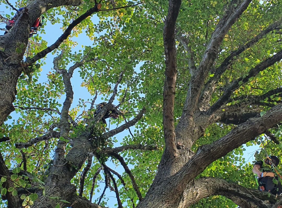 Gallring och reducering av stor lind i Höganäs. Ena sidan klar!
